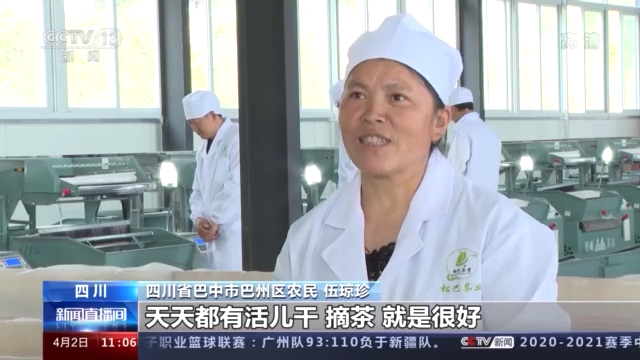 四川省巴中市巴州区农民 伍琼珍:这个茶厂修在我们这里面,天天都有活儿干,摘茶,就是很好。就在家门口,可以照顾小的老的,可以在家里喂两个猪,很好。