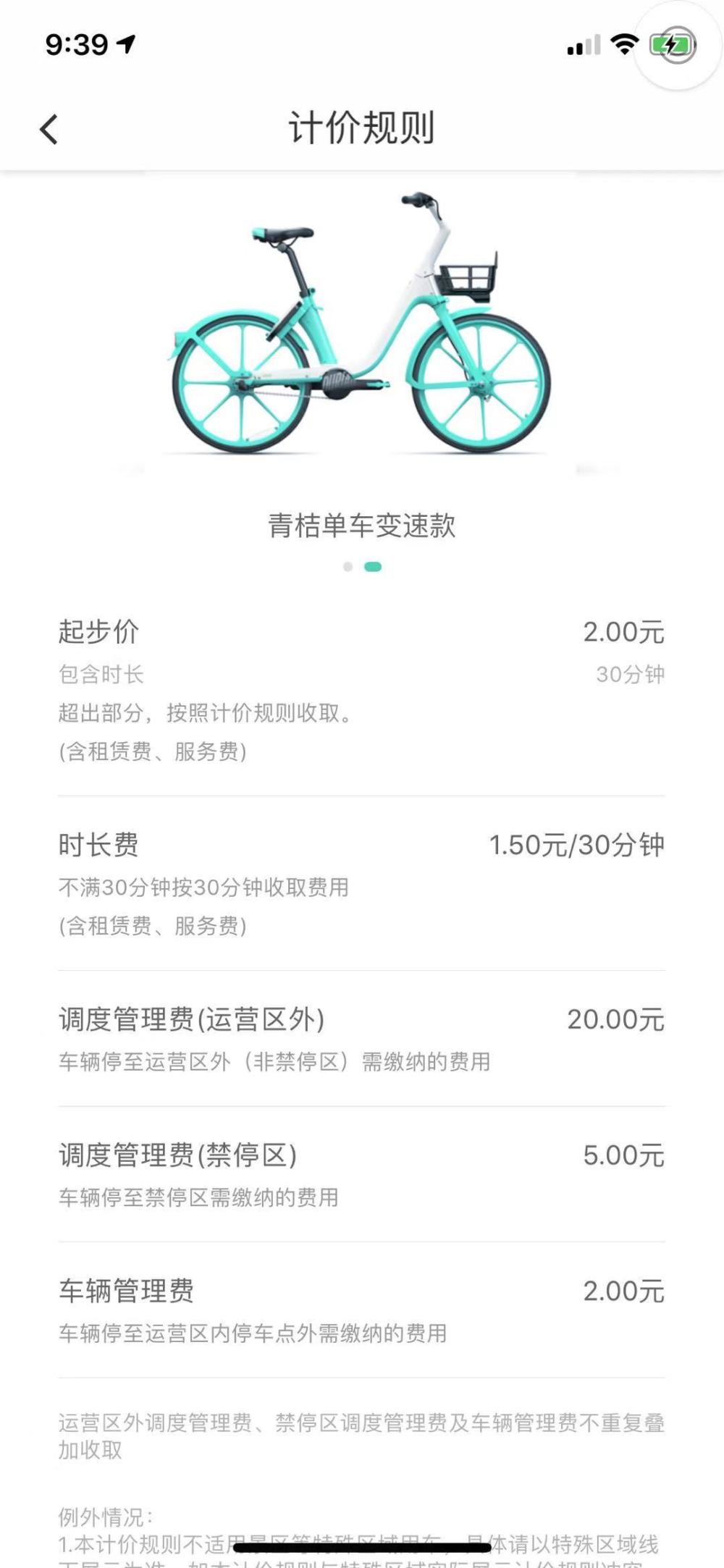 此为青桔单车在北京的计费规则 图片由青桔单车提供