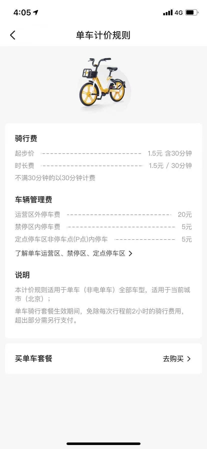 此为美团单车在北京的计费规则 图片由美团单车提供