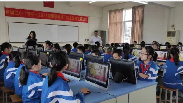 广东台山市一小学分批组织各班学生,来到学校电脑室,引导同学们登陆中华英烈网,通过云献花、云祭拜等方式向革命烈士表达敬意,并写下他们要说的话。