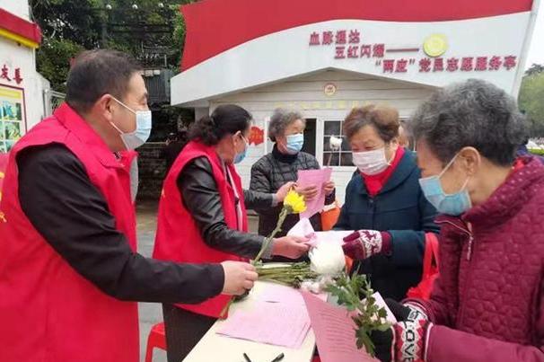 ●4月1日,在合肥芜湖路的“文明祭祀宣传台”,志愿者们备好黄、白两种颜色的鲜菊花,引导市民用带来的纸钱换取或免费领取,积极引导群众文明低碳祭扫;