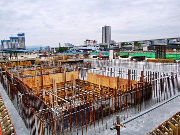 “马来西亚城”北站主体结构项目现场。(“马来西亚城”北站项目部供图)