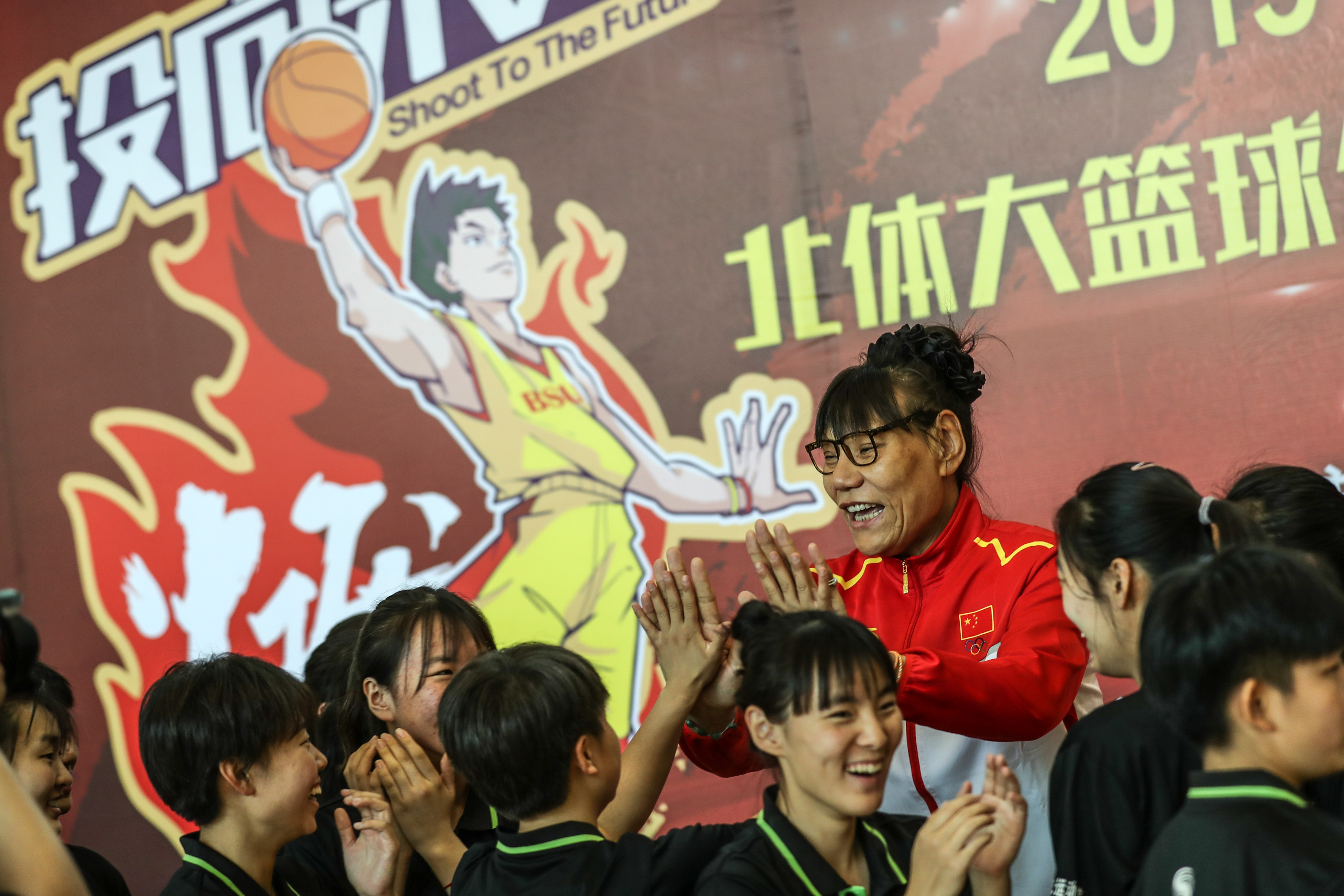 前中国国家女子篮球队队员郑海霞(右四)。新华社记者潘昱龙摄