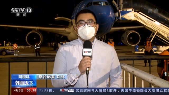 总台记者 刘欣:在我身后的就是刚刚抵达阿根廷首都布宜诺斯艾利斯的阿根廷航空公司包机。这是第二次阿根廷航空公司专门派出包机到北京运载新冠疫苗,用于该国的疫苗接种计划。