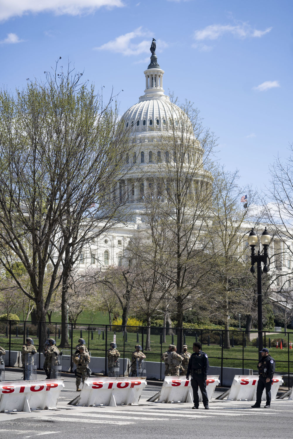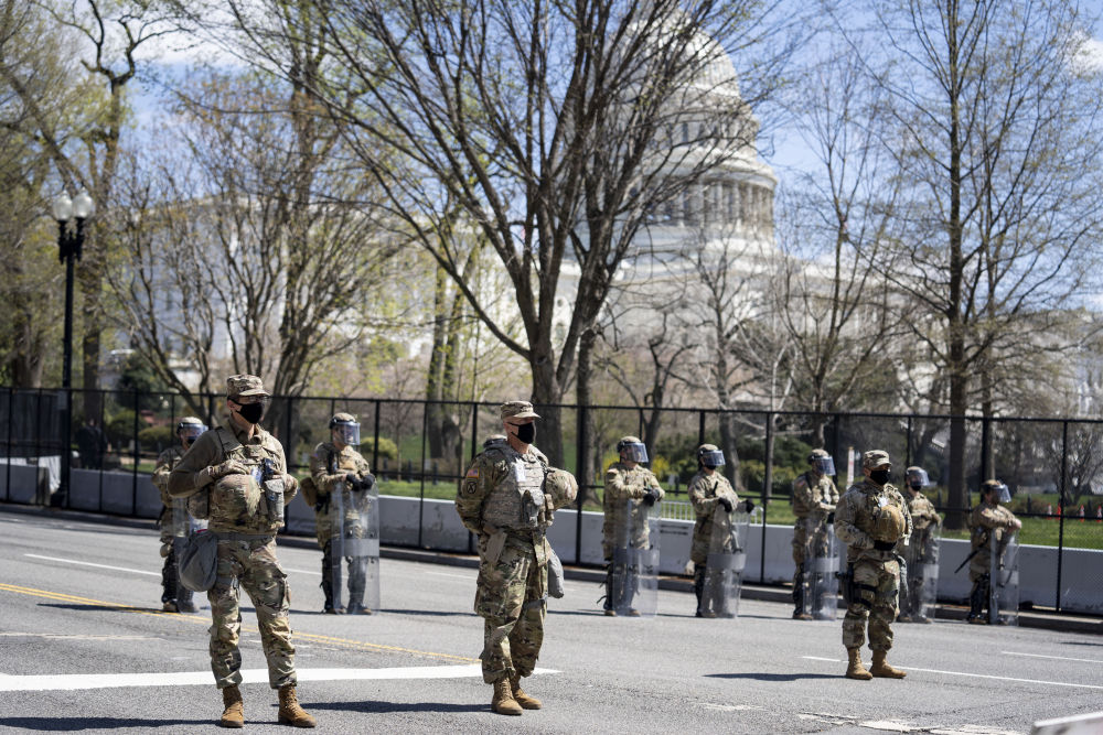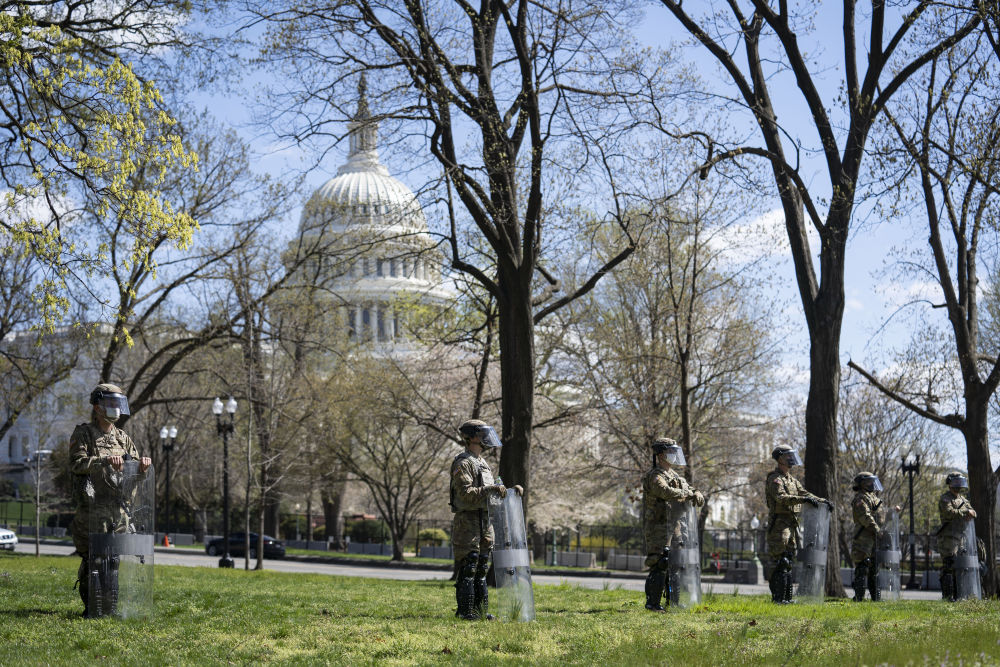 ↑↓美国国民警卫队队员在华盛顿国会附近警戒。