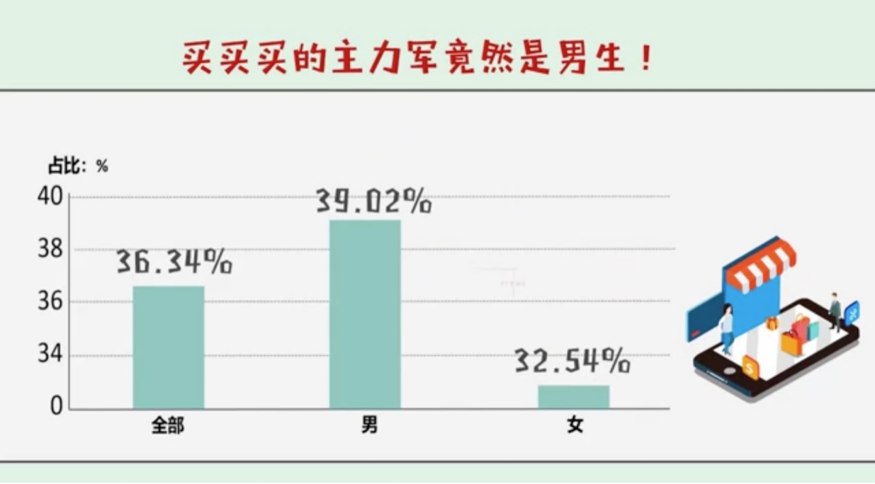 从不同年龄来看, 18—25岁的年轻人网购的比例占到了36.34%,在这个95后的剁手人群中,买买买的主力军竟然是男生!选择网购的比例高出了女生6个百分点,谁说只有女生最败家?!