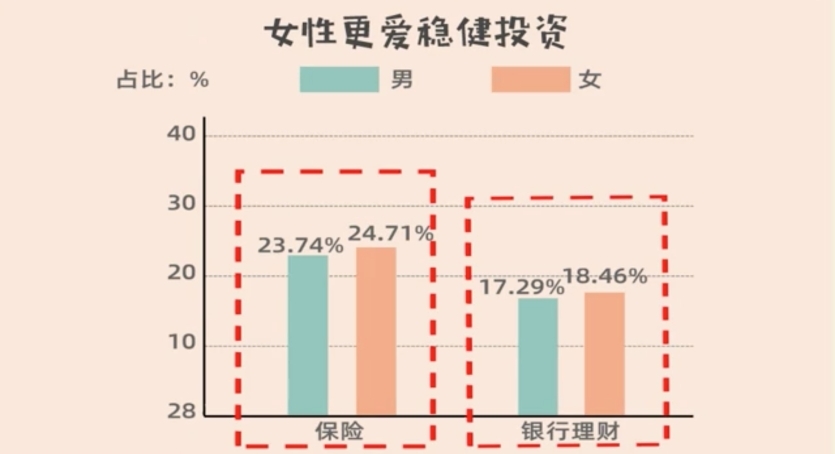 你如果认为女人只会花钱,那就错了!《中国美好生活大调查(2020—2021)》数据显示,在投资领域,巾帼不让须眉。在各项投资品类中,选择是不相上下,男性在股票、黄金等贵金属等激进投资方面明显高于女性。女性在保险、银行理财方面等稳健投资方面明显高于男性。