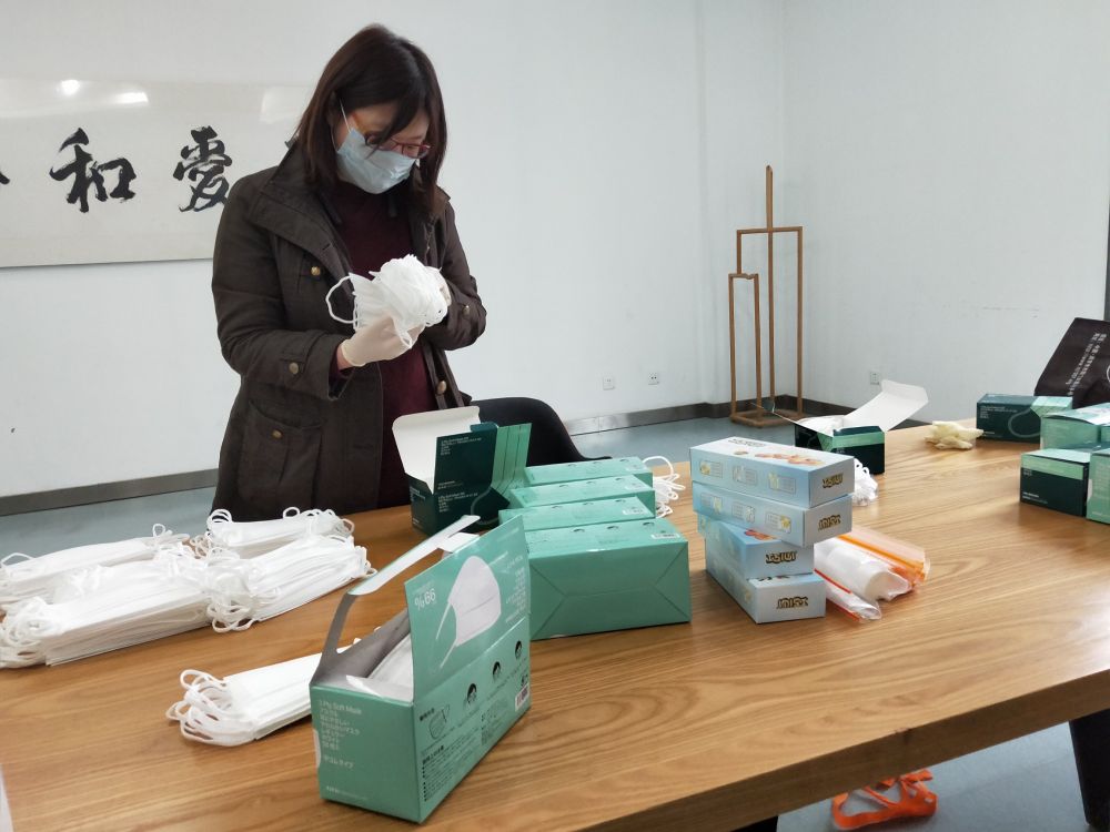 ↑2020年2月,援助协会为南京大屠杀幸存者筹集口罩。(新华社发)