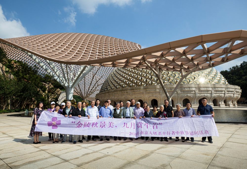 ↑“金陵秋景美,九月赏牛首”——2020年南京大屠杀幸存者中秋慰问活动。(新华社发)