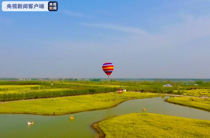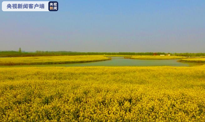人间三月芳菲始,桃红李白菜花黄。在河南新乡封丘县内,数万亩油菜花开成海,为中原大地画就诗意春景。