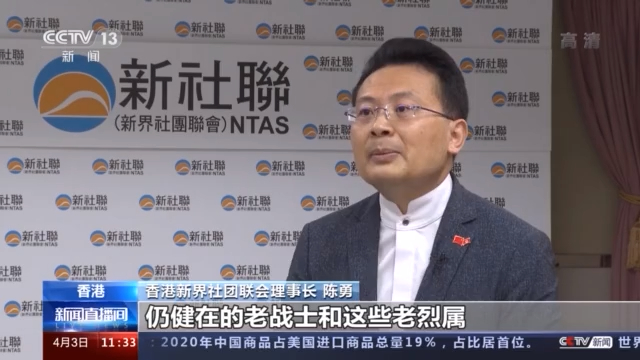 香港新界社团联会理事长 陈勇:新界社团联会,他们的始创者很多都是当年东江纵队港九独立大队(成员),就是我们中国共产党带领的游击队,他们的后代或者他们影响的新界民众和青壮年,他们组成了爱国的联盟。现在我们看到很多仍健在的老战士和这些老烈属,还有他们的后代继承了这种传承,继续在社区里边宣讲抗战的历史,同时宣讲他们热血里边对国家民族的感情,然后不管香港遇到什么情况,他们对国家的感情始终不变,影响了千千万万的香港的一代又一代。
