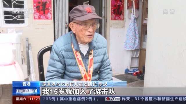 抗战时期乌蛟腾村儿童团团长 李汉:我14岁日本人打香港,我15岁就加入了游击队,那时候我们组织上的分配,叫我搞好这个村的儿童,组织儿童团,所以我在儿童团来说都是唱歌,因为我最喜欢唱歌。将这个儿童团,大概是40多个儿童组织得很好,大家都很听话,尤其是听祖国的。