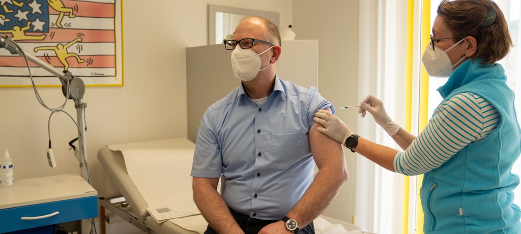 △德国巴伐利亚州一名家庭医生正在接种新冠疫苗(图片来源:德新社)