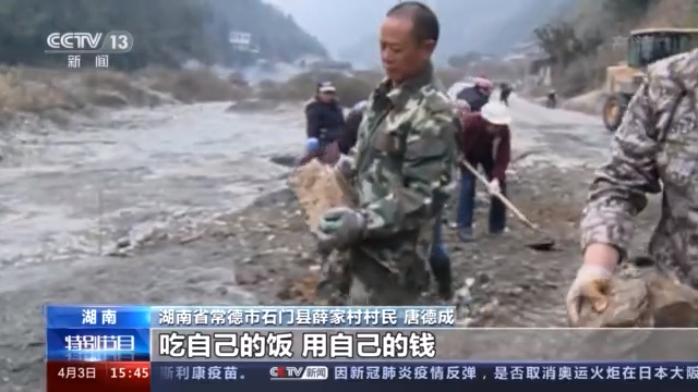 湖南省常德市石门县薛家村村民 唐德成:每天早上6点半就起来,开始搬石头、拌水泥沙浆,什么事都搞,天天都是如此。这么一个陌生人,吃自己的饭,用自己的钱,把他的精力和他的精神带到我们这里。