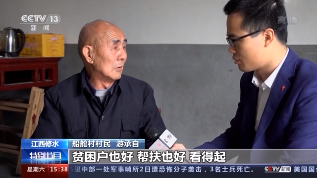 船舱村村民 游承自:她那时就叫我,游爷爷,我来帮扶您,你是个贫困户,我说不错,我是个贫困户,她说我是乡里的帮扶干部,当时我心里就开心,(觉得)这个小孩子不错啊,见到就叫我爷爷。是孙女才当我是爷爷,不是孙女就不会当我是爷爷,我就感觉她就像我亲孙女一样,我当时心里就很高兴哦。