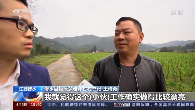 修水县复原乡雅洋村村书记 王诗勇:来一个这么年轻的领导啊,当时(对吴应谱)还是持一个怀疑的态度。后来我们去群众家里,比如年纪大一点他就叫叔、大伯之类,很有礼貌,老百姓也很喜欢他。我心里的疑虑就解开了,我就觉得这个(小伙)工作做得比较漂亮,他愿意去做,愿意到每一户群众家里去聊天,去做事。