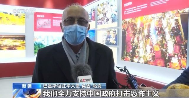 巴基斯坦驻华大使 莫因·哈克:今天看了这个展览,我对新疆历史有了一定的了解,尤其是对中国政府对反恐和去极端化斗争有了更深刻的了解。巴基斯坦一直深受恐怖主义危害,我们会全力支持中国政府打击恐怖主义。