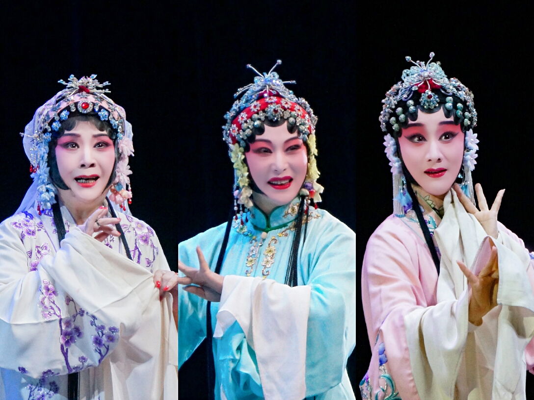 △拼版照片,自左向右分别为上海昆剧团国家一级演员梁谷音、江苏省昆剧院国家一级演员孔爱萍、浙江昆剧团青年演员胡聘饰演杜丽娘。新华社发 夏俊俊 摄