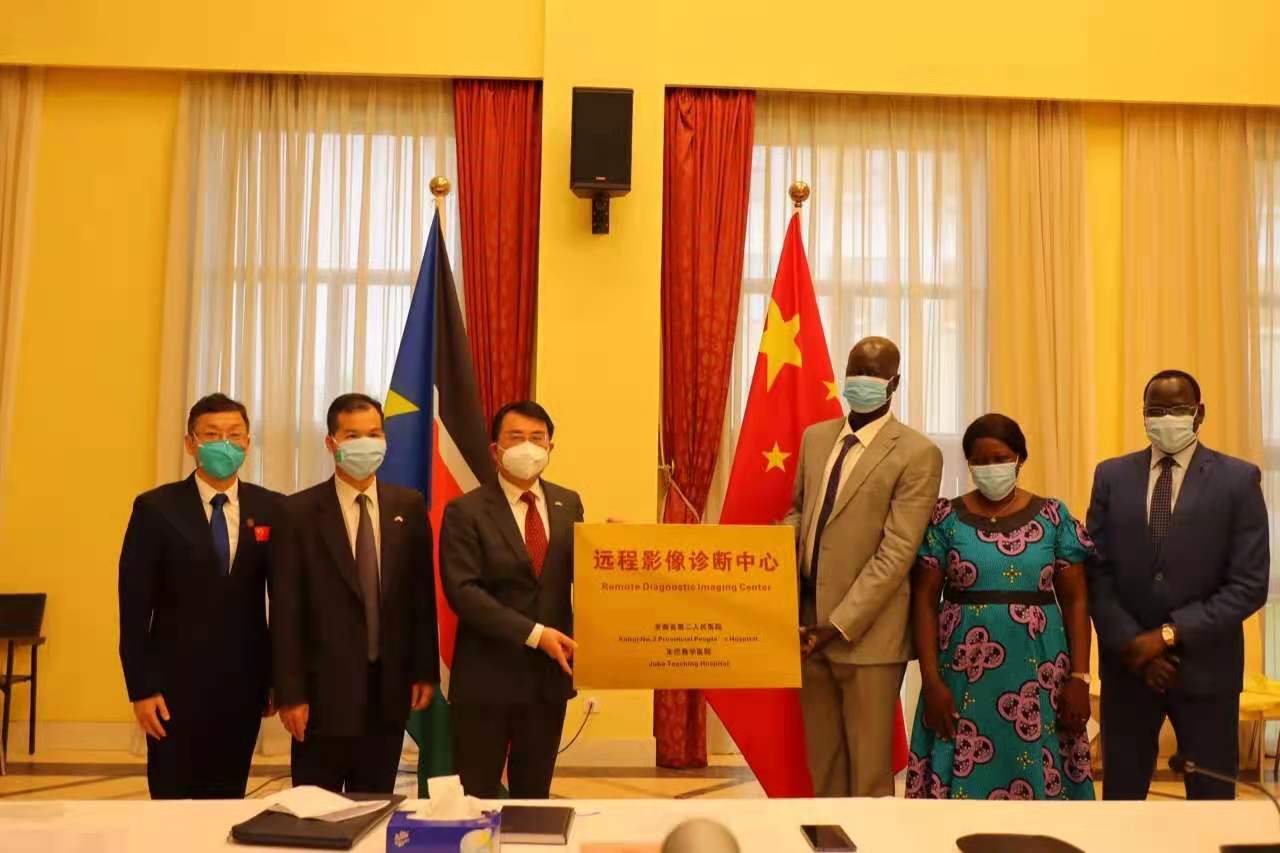 日前,中国(安徽)援建南苏丹远程影像诊断中心正式揭牌。中国驻南苏丹大使华宁、南苏丹卫生部次长马楚特、朱巴教学医院代理院长帕温以及第八批援南苏丹医疗队队长等出席揭牌仪式。