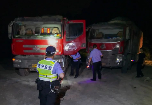 4月1日晚至2日上午,在广西南宁市公安局的统一部署和指挥下,交警支队联合特警支队共出动200名警力,分别在苏圩镇、吴圩镇、刘圩镇、五象新区、良庆区、经开区等6个区域,开展了集中连片式的大货车违法整治“惊雷行动”,重点对砂石运输车超载、超速、非法改装、闯红灯等严重违法进行精准打击,现场查纠交通违法132起,扣留大货车62辆,震慑效果显著,群众拍手称快。