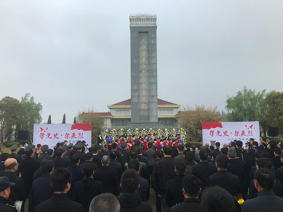 今年清明节前夕,三江营革命烈士纪念馆前举行“让三江营英雄回家”活动。扬州市上百名干部群众和烈士亲属们一同默哀,向长眠在三江营的革命先烈表示怀念和敬意。