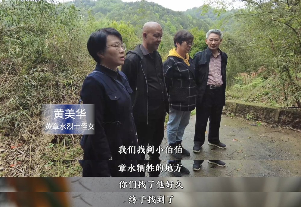 黄章水烈士的侄女也来到爷爷奶奶墓前告慰他们的在天之灵:“我们今天告诉你一个好消息,我们找到小伯伯章水牺牲的地方。你们找了他好久,终于找到了。”