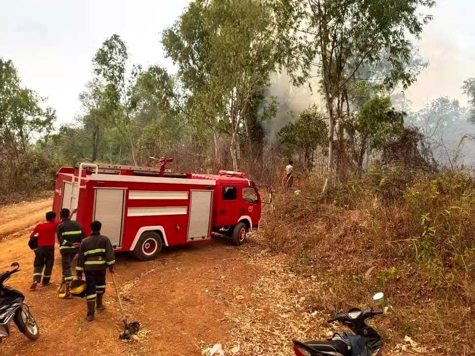 当地时间4月3日上午10时30分许,缅甸掸邦北部重镇腊戌市一栋公务员宿舍附近突然发生山林大火。火灾发生后,该镇区消防局多辆消防车赶往现场灭火。