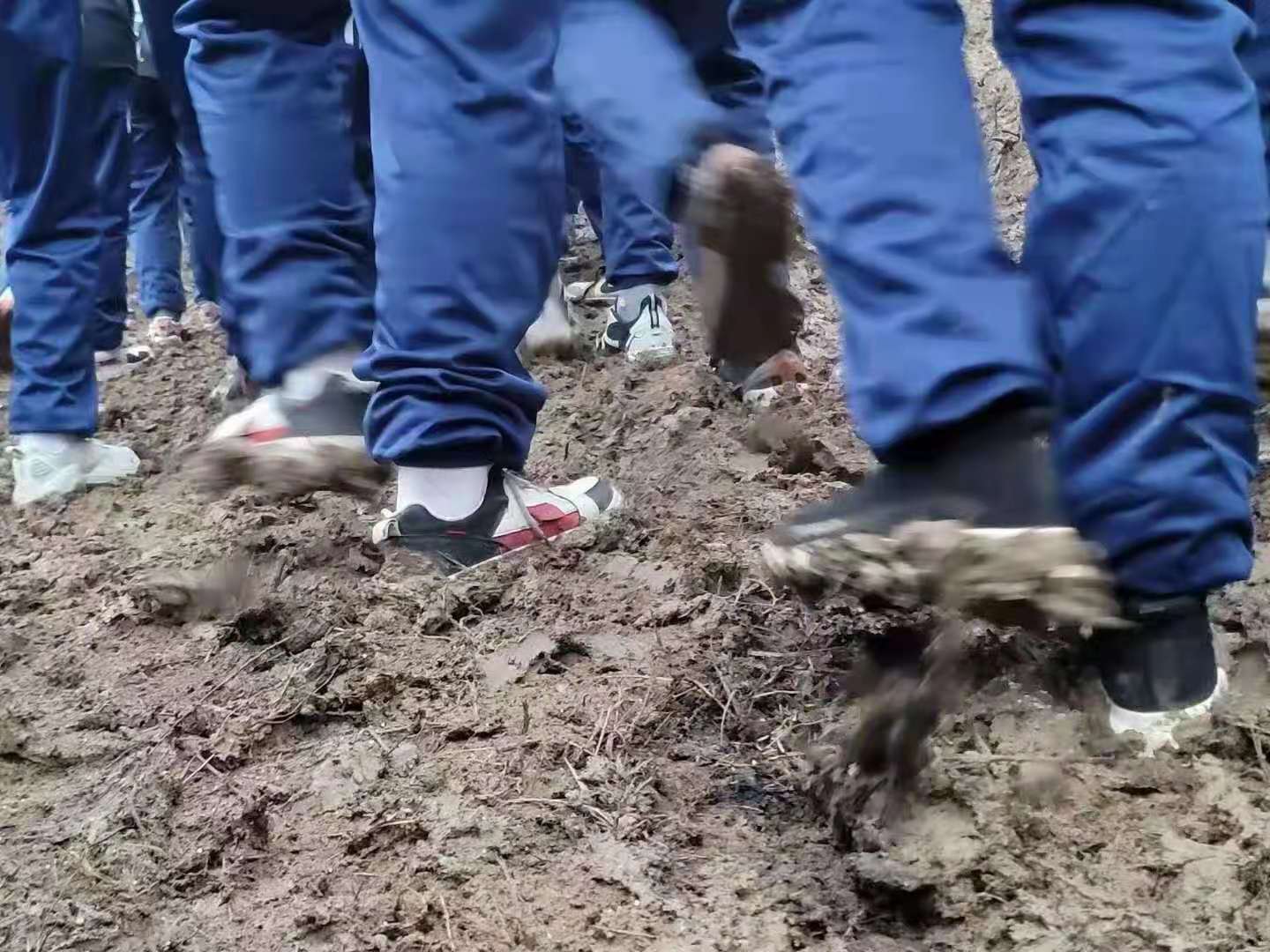 2日凌晨5点多,两校两千多名学生冒着雨雪、踏着泥泞出发。“一路上一会雨一会雪,孩子们深一脚浅一脚,有时鞋子陷到泥泞里都拔不出来,但没有一个人退缩。”弘文中学七年级年级主任殷万香说。