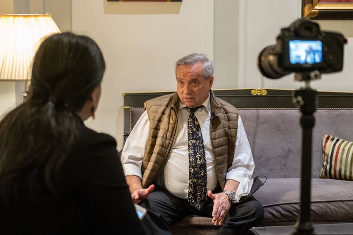 4月2日,世界卫生组织观察员、马德里医院管理中心副主任格兰达尔在西班牙马德里接受新华社记者专访。新华社记者 孟鼎博 摄