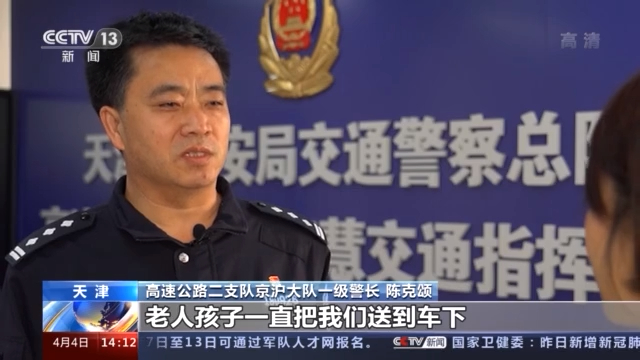 高速公路二支队京沪大队一级警长 陈克颂:他就是赶紧回到队里自发组织了几个同事捐了点钱,然后到外边批了几箱方便面、榨菜、火腿肠,回队里拉了一桶热水,及时给送过去。送完以后下车的时候,老人孩子一直把我们送到车下,外面还下着大雪。