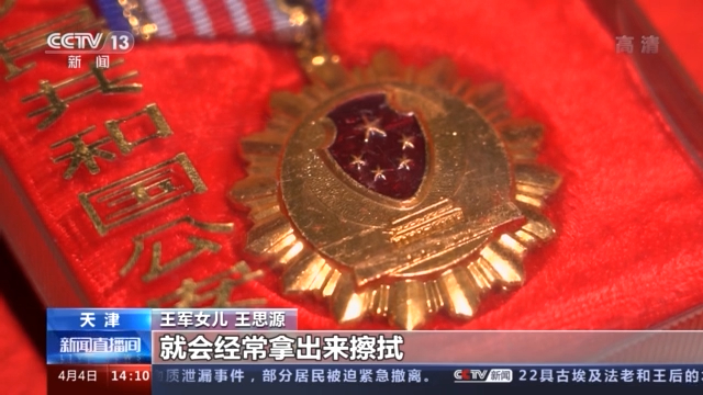 王军女儿 王思源:他平时没事儿的时候就会经常拿出来擦拭。这枚奖章对我们全家人的意义都是沉甸甸的。