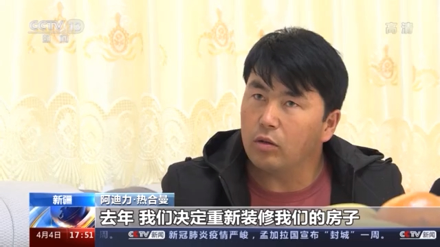 阿迪力·热合曼:去年我们决定重新装修我们的房子,过去我们就是农民,必须用手去干农活,我们钱不多,时间也不多,现在我们买了一些新的家具,我们还给房子安装了地暖。