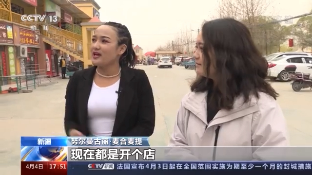 努尔曼古丽·麦合麦提:我都认识他们,以前都是农村的,现在都是开个店,你看一下蛋糕店、商店、食堂都有,化妆店也有,他们开店实际是比摘棉花挣钱更多。