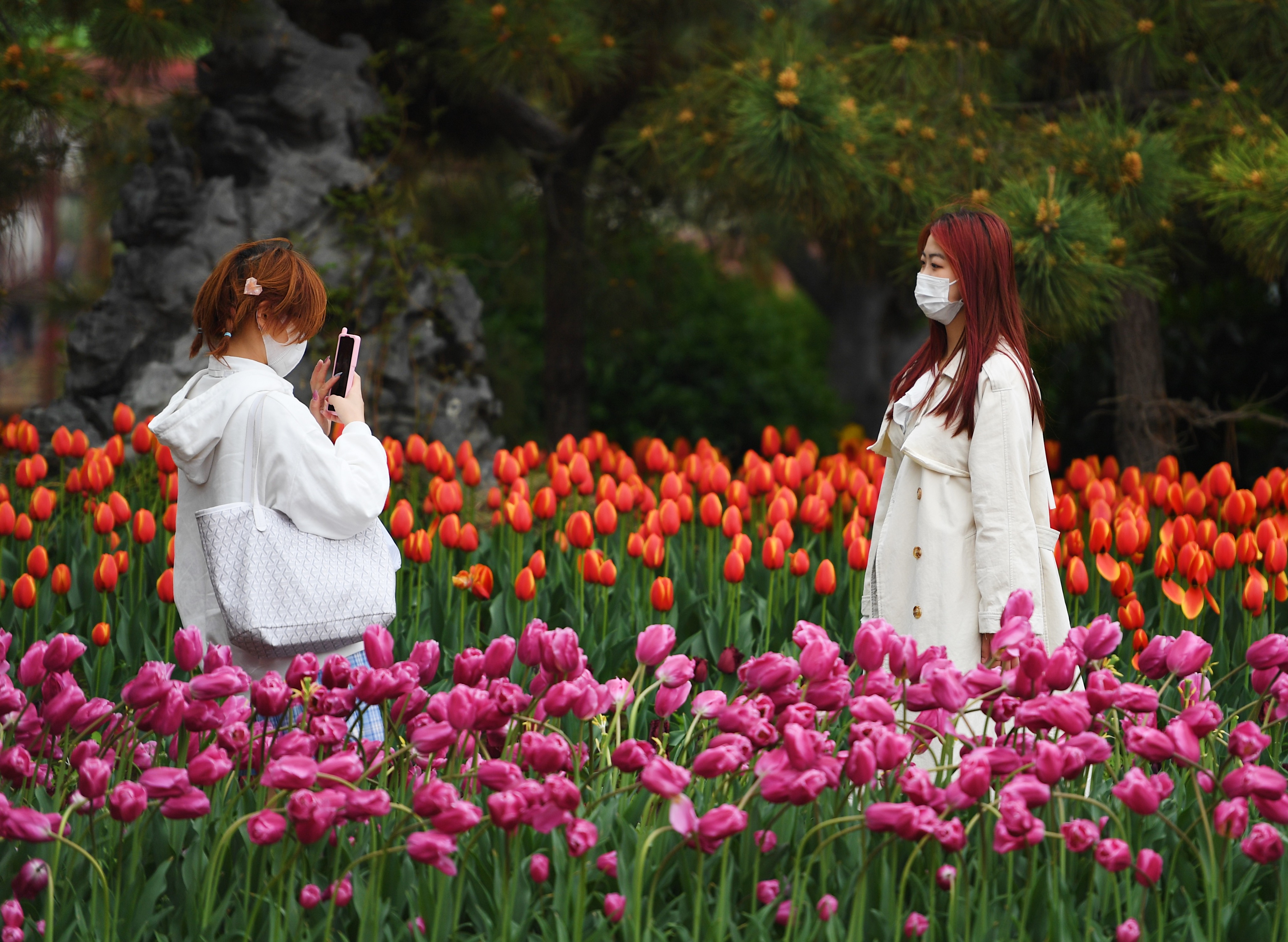 (新华社照片,2021年4月3日,游客在河南开封市天波杨府景区拍照留念)