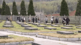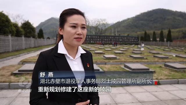 湖北赤壁市退役军人事务局烈士陵园管理所副所长舒燕:“在2010年7月份的时候,赤壁市筹措资金,在墓群原址的基础上重新规划修建了新的陵园。老的墓碑移到了后面的墓碑墙上,看起来也是很庄严肃穆,而且给每一位烈士新修了大理石的墓碑。对陵园周边的环境也进行了整治,周围都是茶山,远处群山环绕,环境也是特别的优美,这也是对烈士的一种尊重和告慰。”