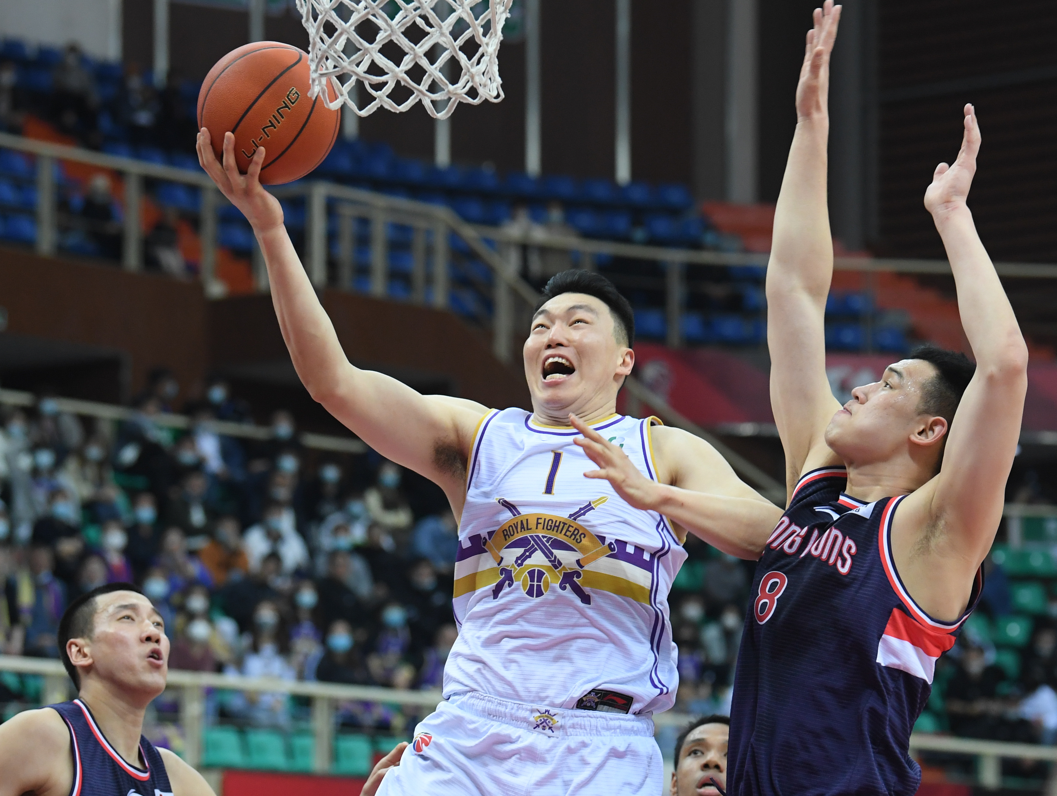 4月4日,北控队球员李根(中)在比赛中上篮。新华社记者翁忻旸摄