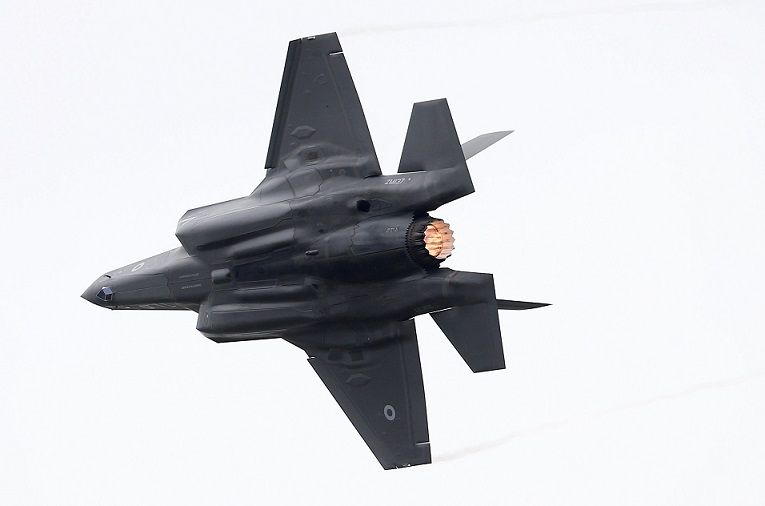 2016年7月8日,一架英国皇家空军的F-35B战斗机在英国皇家国际航空展上做飞行表演。(新华社/路透)