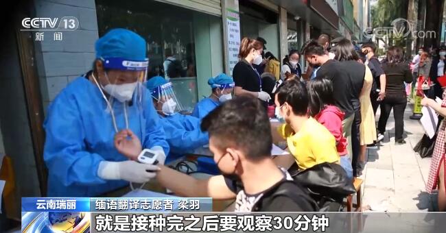 记者通过走访瑞丽紧急开辟出的疫苗接种点发现,前来接种疫苗的居民已经排成长龙,接种点将24小时昼夜不间断运转。而像这样的接种点已经设置了25个,预计周二,瑞丽将完成对适宜人群全覆盖的疫苗接种工作。