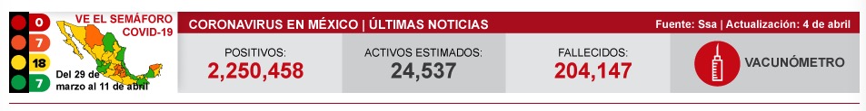 当地时间4月4日,墨西哥卫生部宣布,截止到4月4日19时,墨西哥全国累计确诊新冠肺炎病例2250458例,较前一天新增了1263例。墨西哥全国确诊死亡病例较前一天新增136例,总数已经上升至204147例。(总台记者 盛嘉迪 吕兴林)