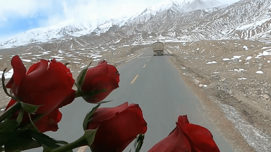 汽车兵将深沉的思念寄托于玫瑰