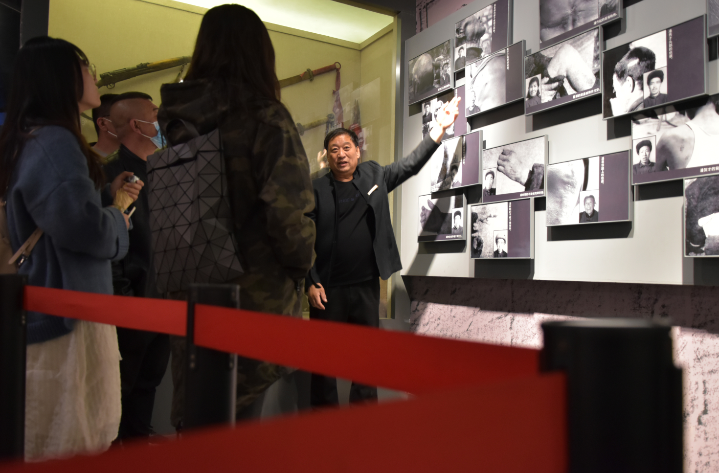 4月3日,周学军在潘家峪惨案纪念馆内为游客讲解惨案历史。齐磊摄