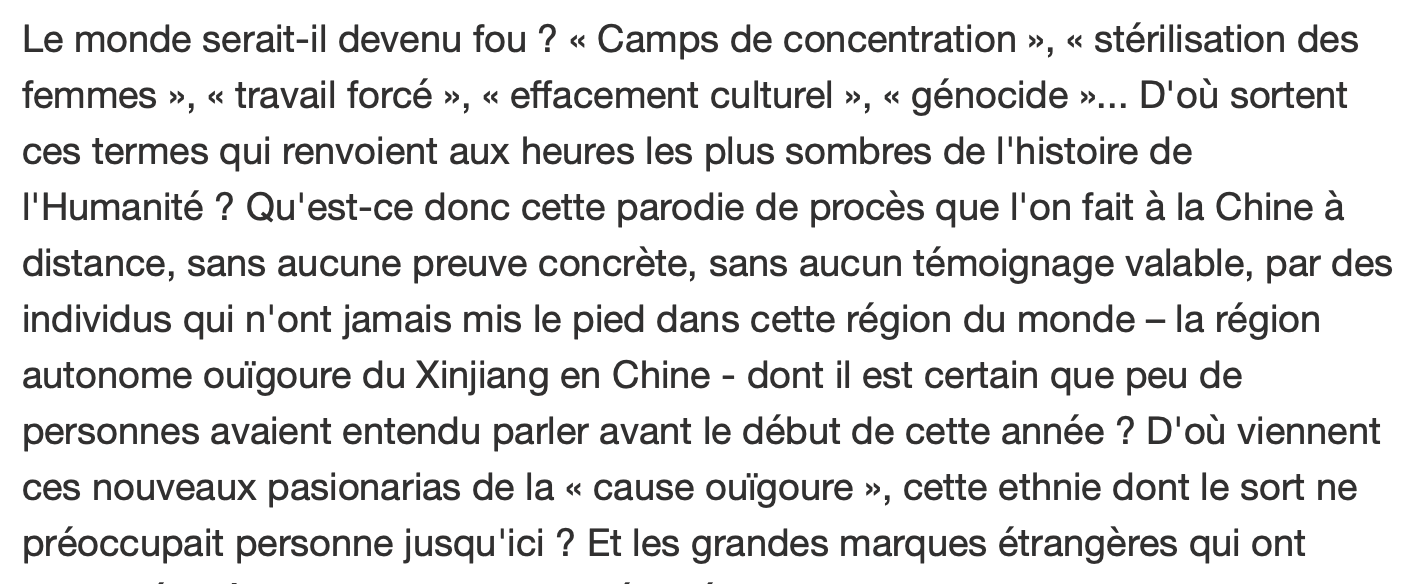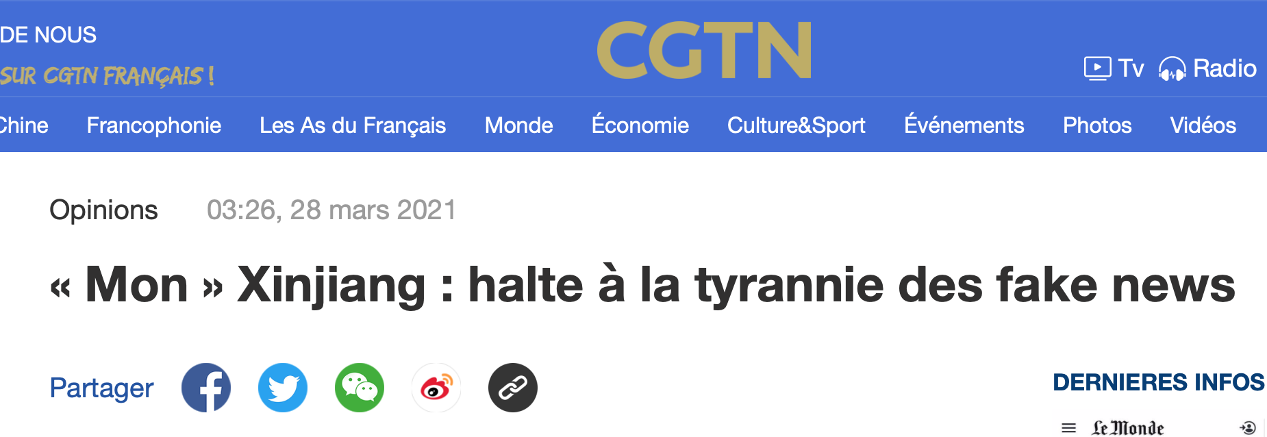 3月28日,一篇署名罗汉娜·博蒙的文章——《我所了解的新疆:制止假新闻的霸权》在CGTN法语网站评论栏刊发。以下为主要内容摘译: