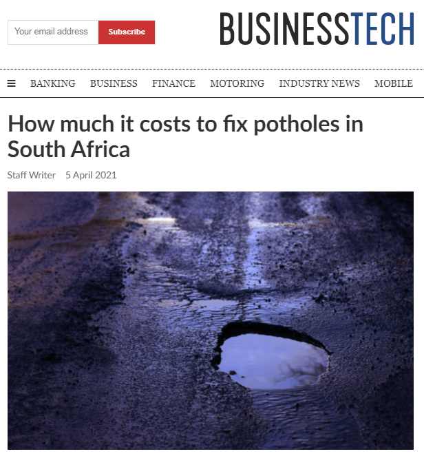 南非交通部部长姆巴鲁拉(Fikile Mbalula)在回复媒体关于维护该国道路所涉及的成本时表示,在南非回填修复道路坑洼的资金约为700至1500兰特每平方米(约315至674人民币)。但是目前南非国家财政拨款资金不足,难以全面维护南非国、省、市三级公路系统。姆巴鲁拉称该国大部分省级公路已达到25年的设计寿命,且近年来交通流量的迅速增加加速了公路的老化和损坏。
