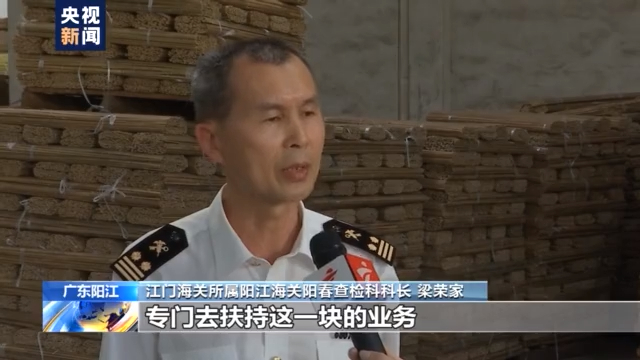 江门海关所属阳江海关阳春查检科科长 梁荣家:在阳春设了一个阳春查检科,专门去扶持这一块的业务,同时就近建了一个“熏蒸库” 就是第三方的检验机构对企业就近服务,当天报检,当天处理,整个产业链的质量体系都提升了。