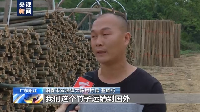 阳春市双滘镇大陈村村民 蓝昭行:我们这个竹子远销到国外,大概一个货柜可以卖到4万多美金。