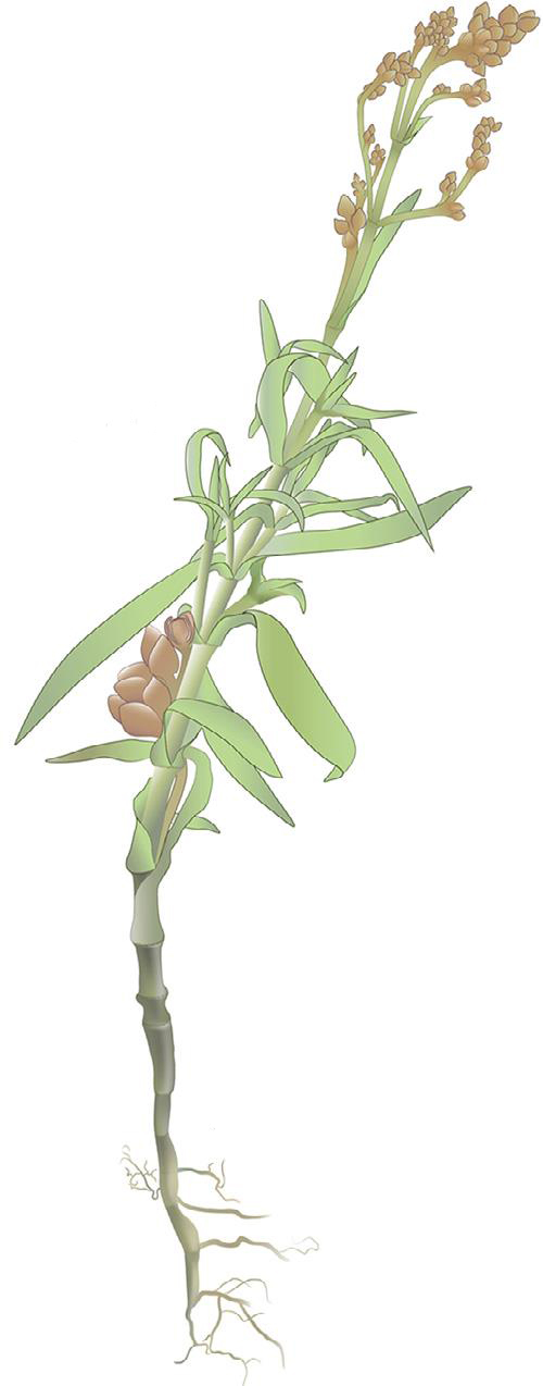 此次发现的宁城中华草长约26厘米、宽5厘米,根、茎、叶、花等各重要器官清晰可辨。从化石上看,它的根系具有侧根,茎具有明显分节,茎上长有多枚叶片。宁城中华草的叶片细长,具有单子叶植物典型的平行叶脉,样貌上类似玉米的叶片。其植株顶端还长有形似高粱穗的花序,花序中包含许多朵小花。
