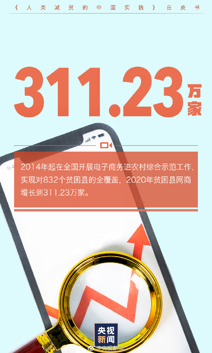 2014年起在全国开展电子商务进农村综合示范工作,实现对832个贫困县的全覆盖,到2020年底累计投入资金249.17亿元,贫困县网商从2016年的131.5万家增长到2020年的311.23万家。
