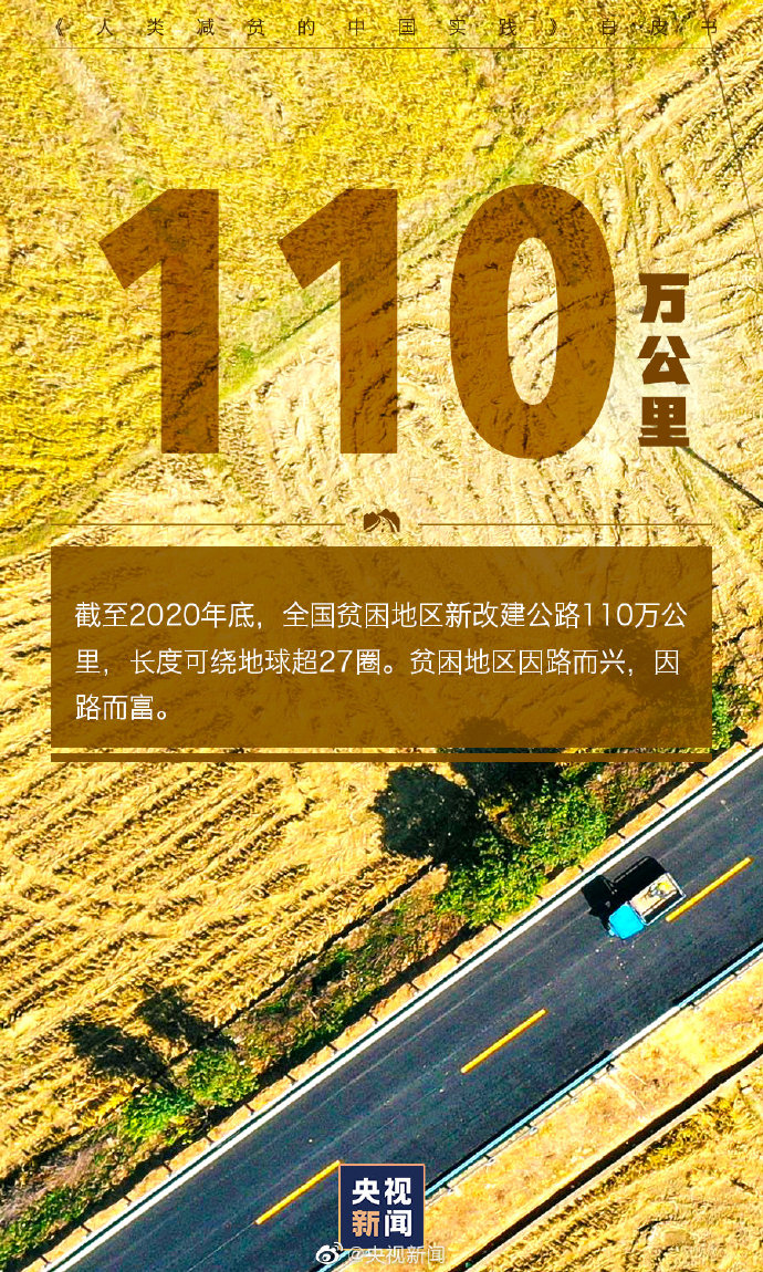 截至2020年底,全国贫困地区新改建公路110万公里、新增铁路里程3.5万公里,贫困地区具备条件的乡镇和建制村全部通硬化路、通客车、通邮路,贫困地区因路而兴、因路而富。