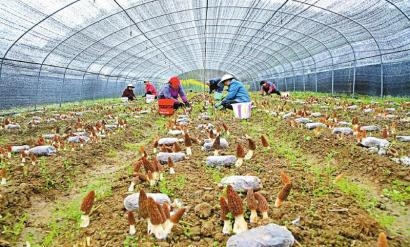 3月22日,广元市朝天区羊木镇洪鑫菌业种植基地,村民正在采摘羊肚菌。高志农 摄