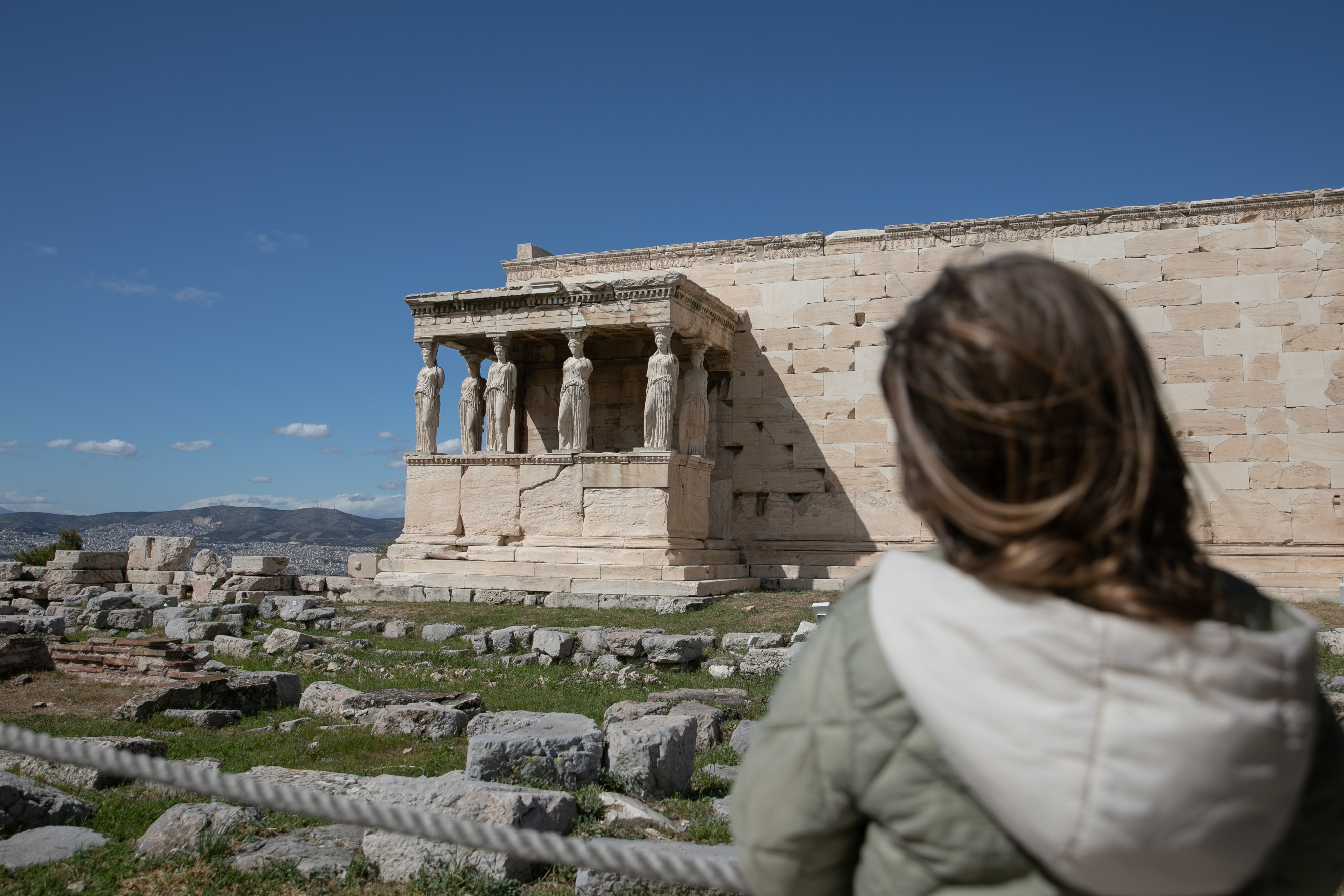 3月22日,一名游客游览希腊雅典卫城。新华社发